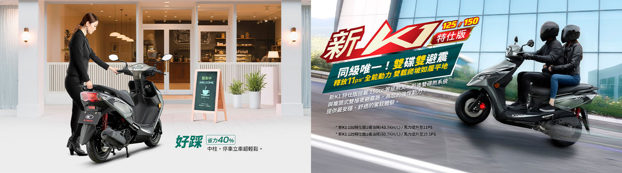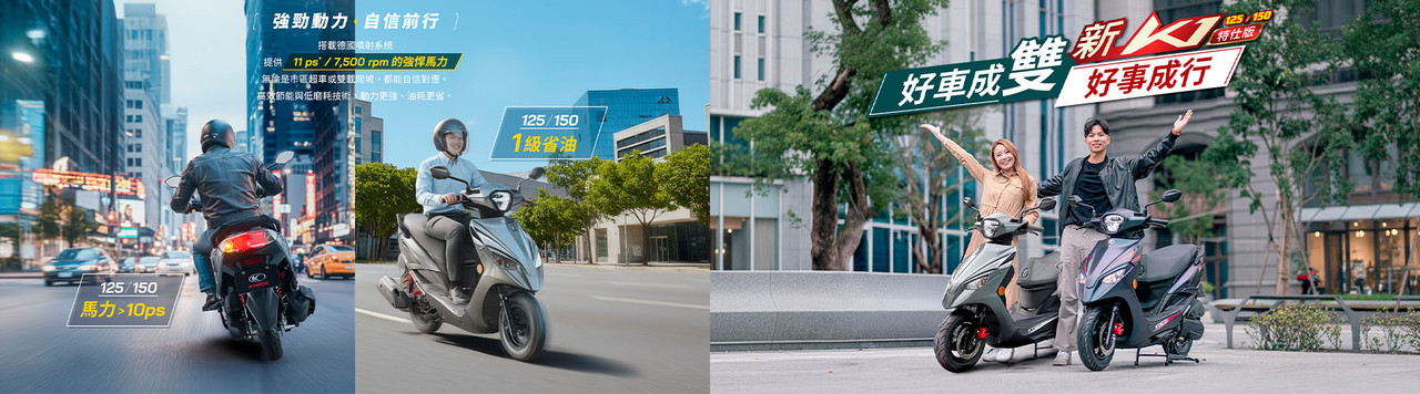 A K1 125 é equipada com motor 124,6cc, que produz 10,1 cv de potência @ 7000 rpm e 1,14 kgfm de torque @ 5500 rpm e a K1 150 é equipada com motor 150,1 cc, que produz 11 cv de potência @ 7500 rpm e 1,21 kgfm de torque @ 500 rpm, aliado a uma transmissão CVT. Em termos de design, se mantém, mas com grafismos novos.