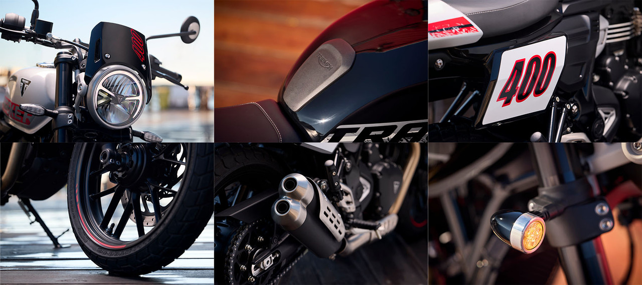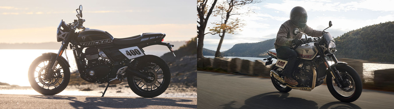 Em agosto deste ano, a Triumph lançou a Thruxton 400, revivendo a cafe racer como uma moto de entrada. Esta semana, a marca anunciou a Thruxton 400 e a nova Tracker 400 no Reino Unido. A Tracker é uma roadster inspirada nas corridas flat track.