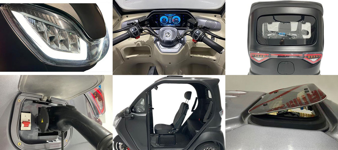 Equipado com motor de imã permanente de 3 kW ou 4 cv de potência, aliado a uma bateria de 60V80A de 2000 ciclos, que permite uma autonomia de 100 km e velocidade máxima de 50 km/h. Possui capacidade para até 3 passageiros e diribilidade provinda de um guidão.